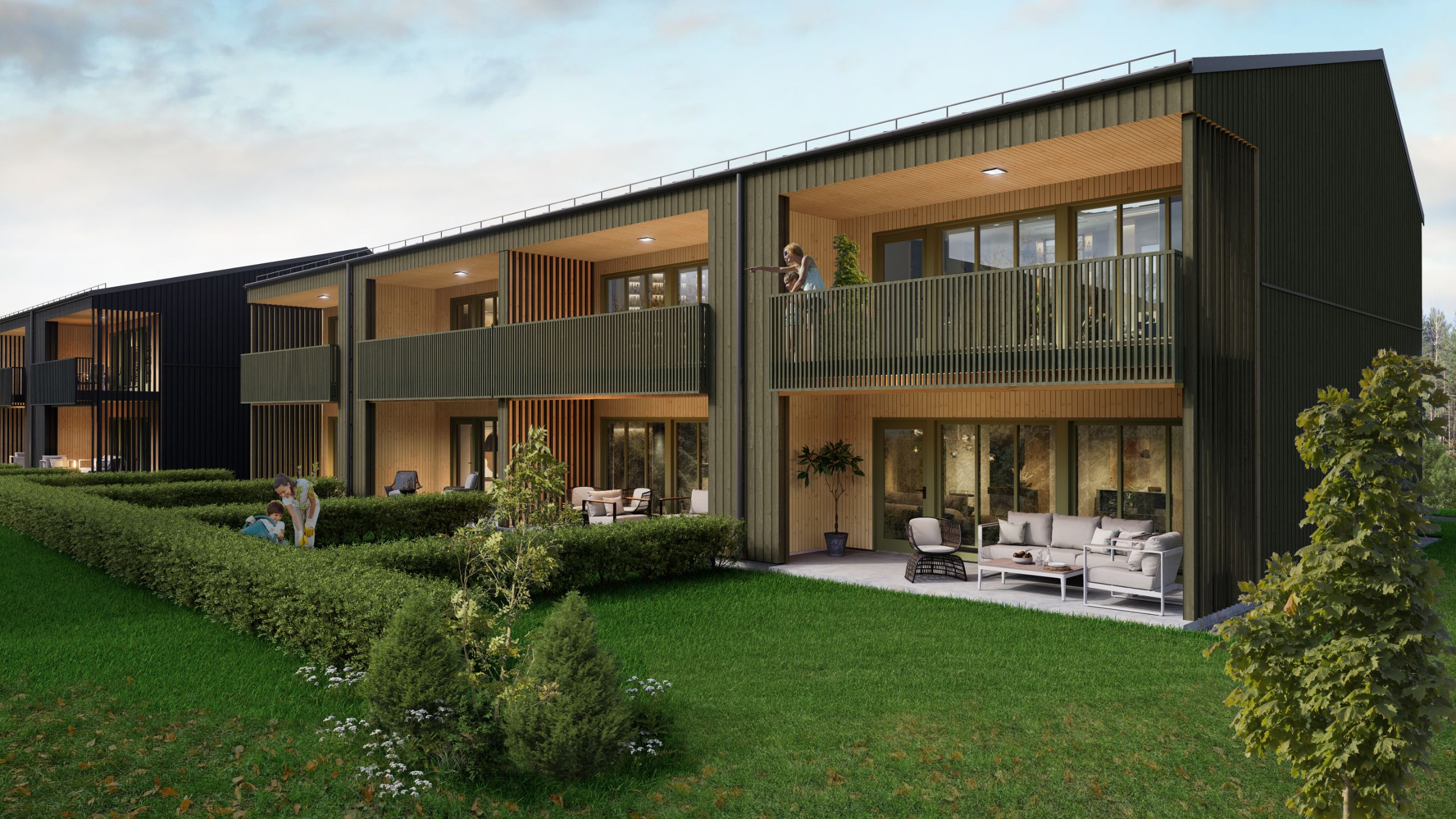 Haralds Hager er et nytt boligprosjekt i Engelsrudhagen i Nannestad – første byggetrinn består av småhusleiligheter som kombinerer smarte løsninger med ferdig beplantet hage eller store balkonger.